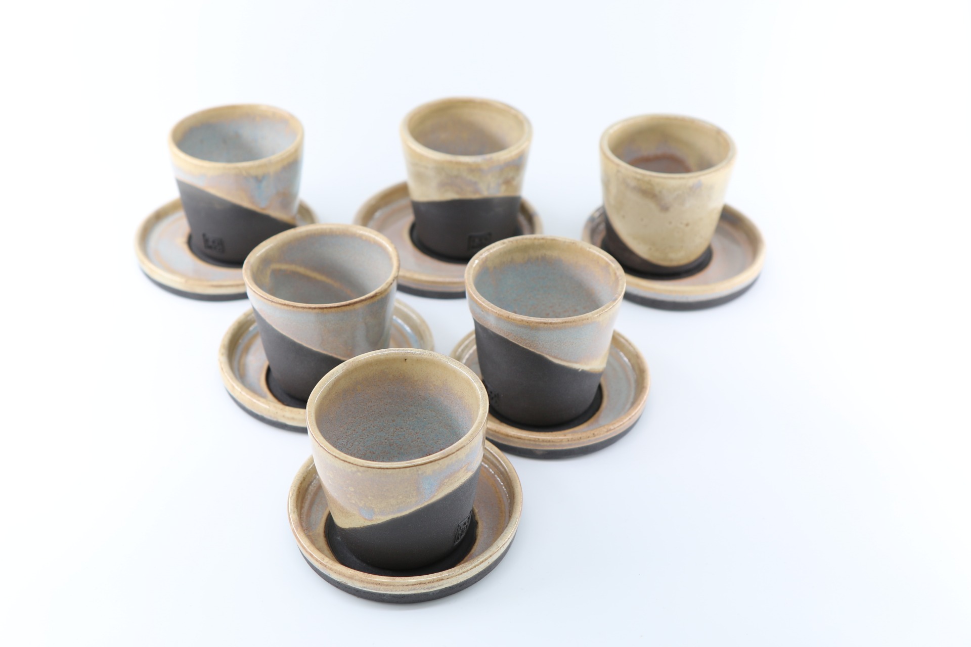 Beker met schoteltje spikkelklei / Rusty Blue Jeans
