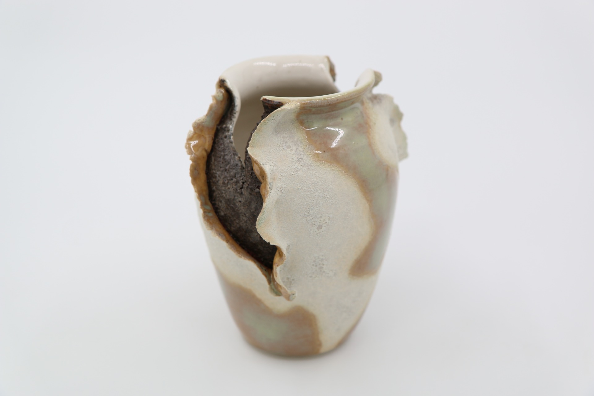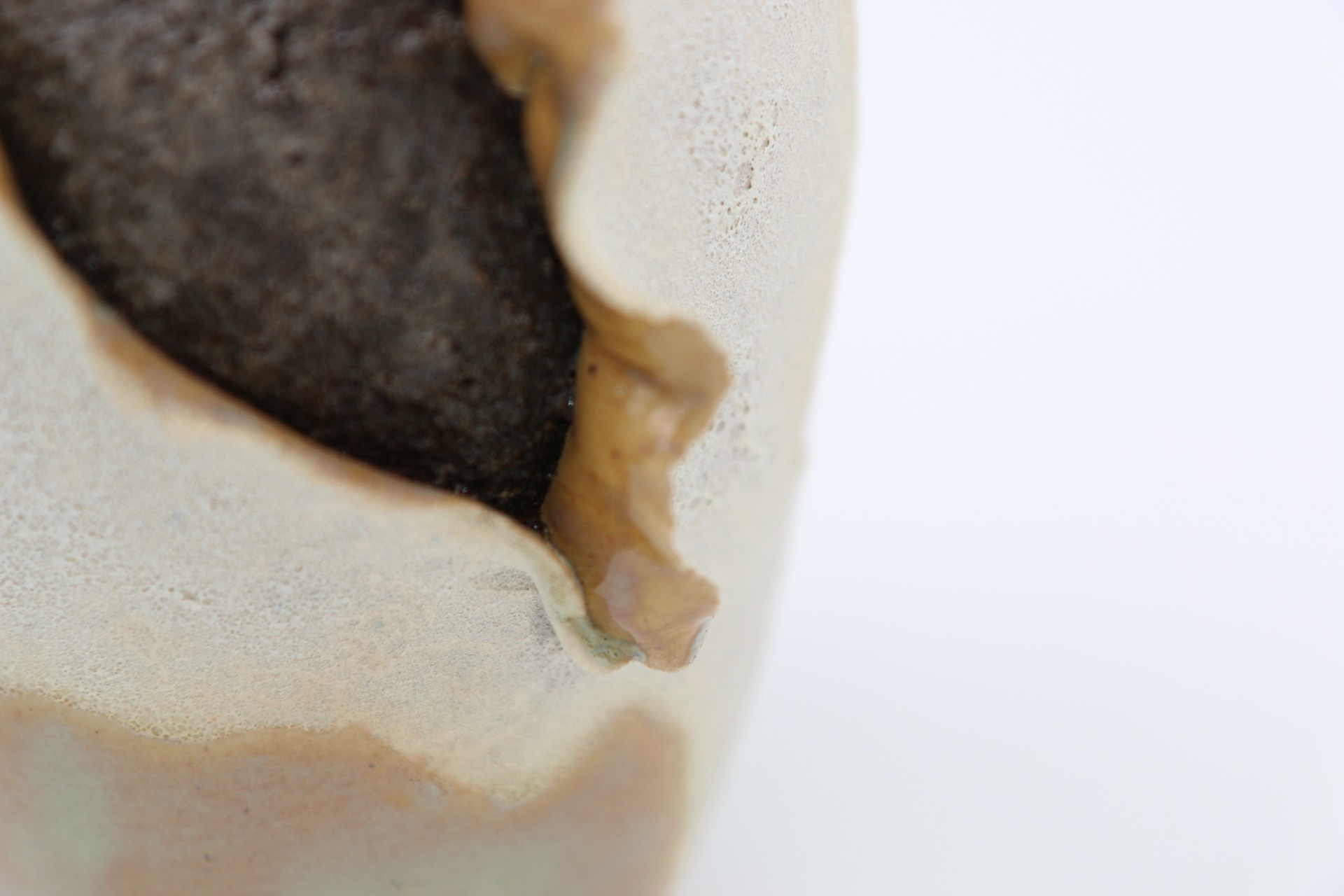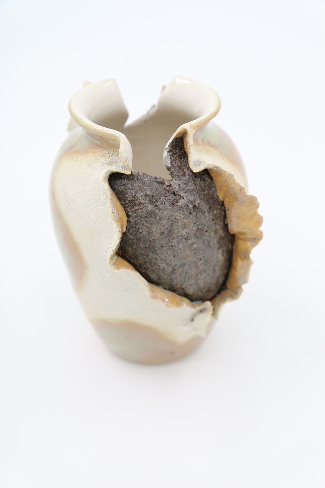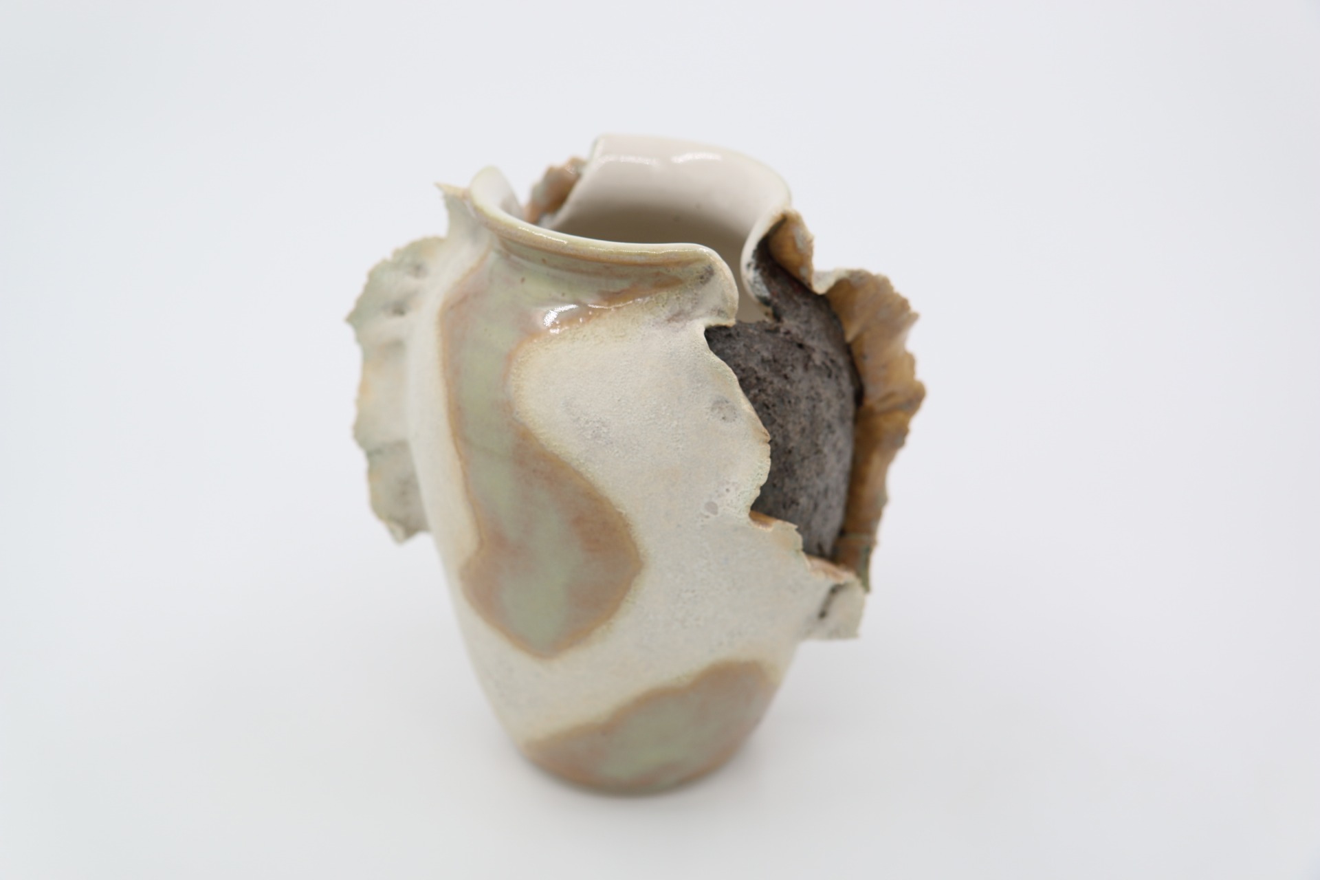 Decoratieve vaas "ExploSea" met golvende randen en structuurglazuur. Droom weg naar verre stranden bij dit maritieme beeld.
