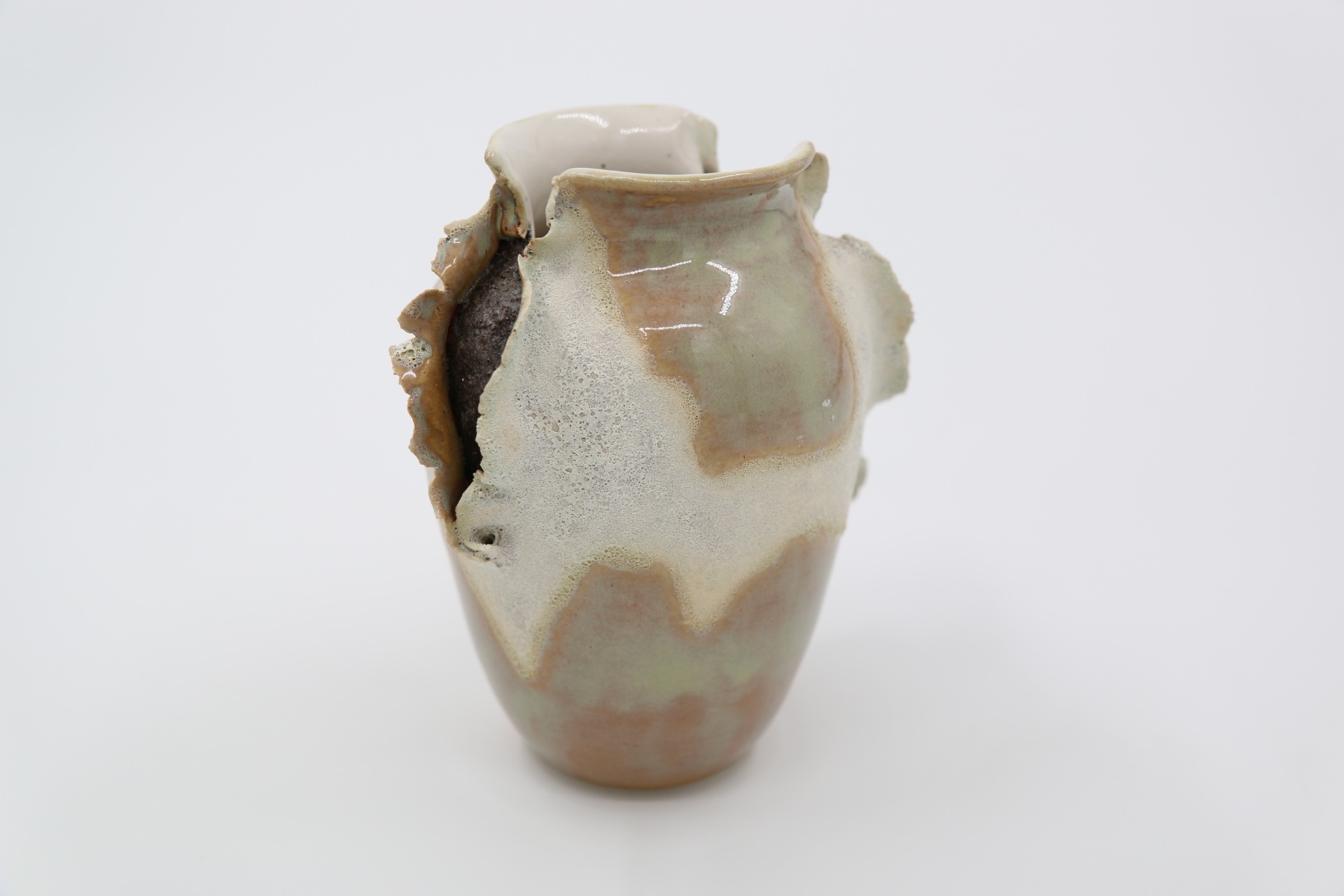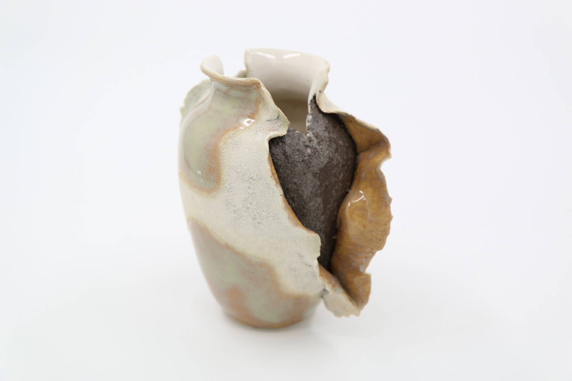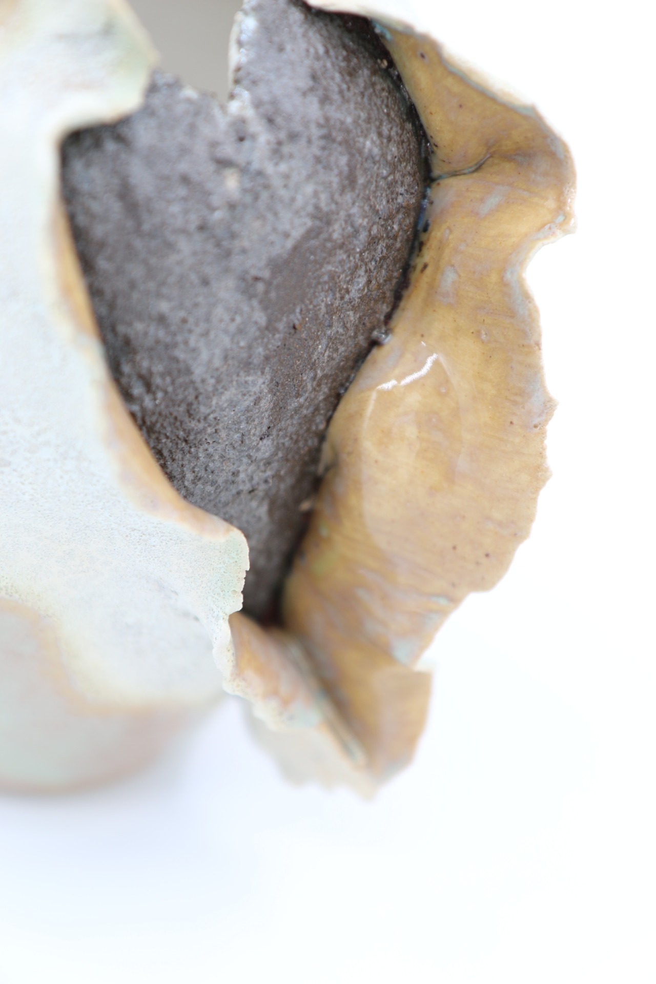 Decoratieve vaas "ExploSea" met golvende randen en structuurglazuur. Droom weg naar verre stranden bij dit maritieme beeld.